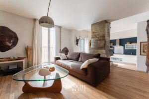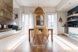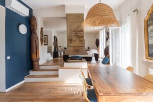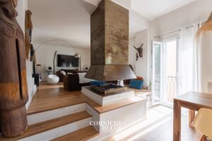 L’espace de vie aux volumes généreux est naturellement scindée en deux par une magnifique cheminée qui fait le liant entre coin repas et coin détente. Les matériaux d’époque (parquet, métal…) se conjuguent à merveille avec les élèments plus contemporains. Les jolies fenêtres apportent la lumière et encadrent tel un tableau les jolies vues sur l’extérieur côté port. Les ouvertures donnent sur deux balcons filants permettant de profiter de la vue sur le château de Cassis, le port et la vie extérieure.