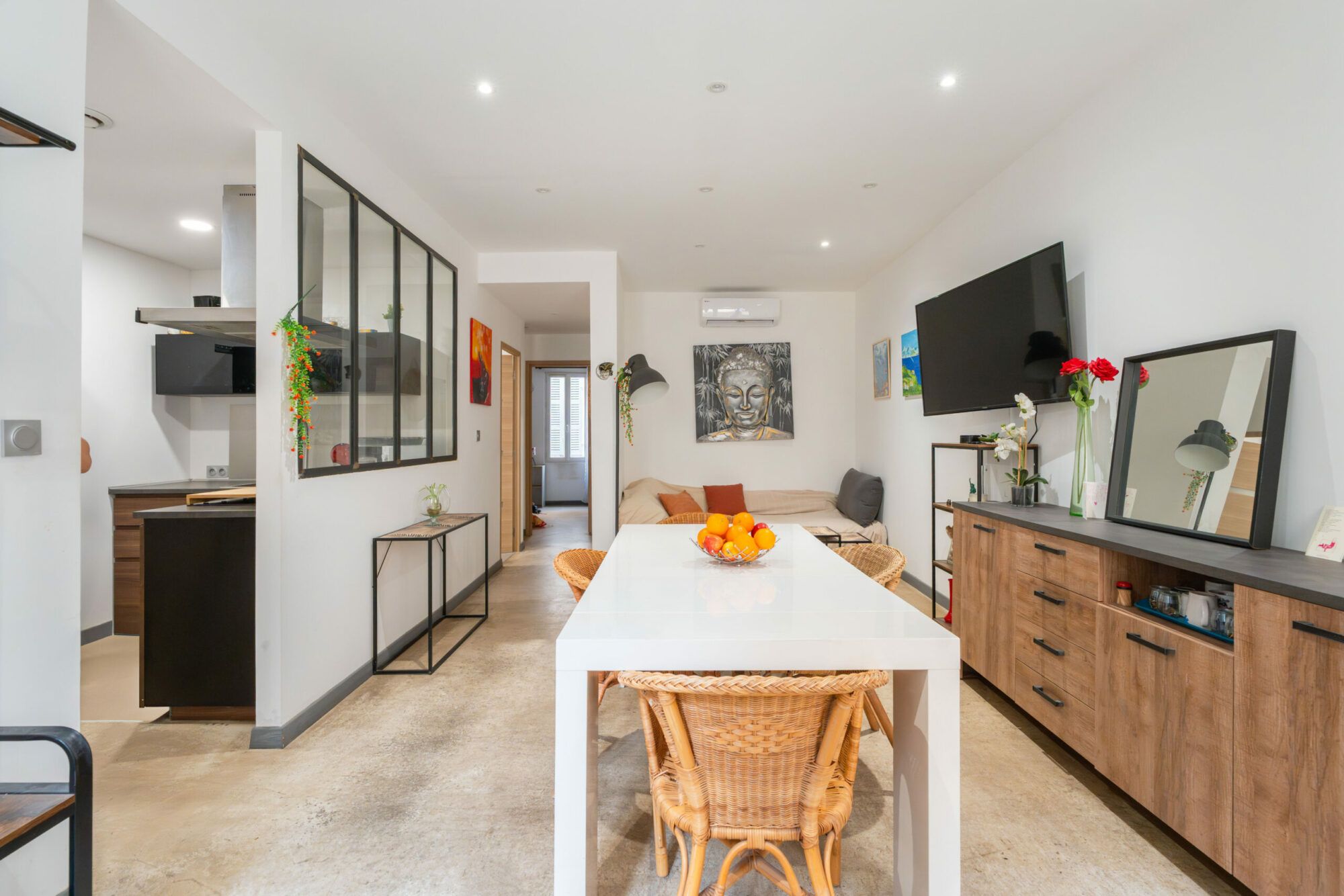 D’une surface de 54,05 m² loi Carrez, ce bien séduit par son atmosphère chaleureuse et son emplacement privilégié, à quelques pas du port, des commerces et des ruelles animées du centre historique.