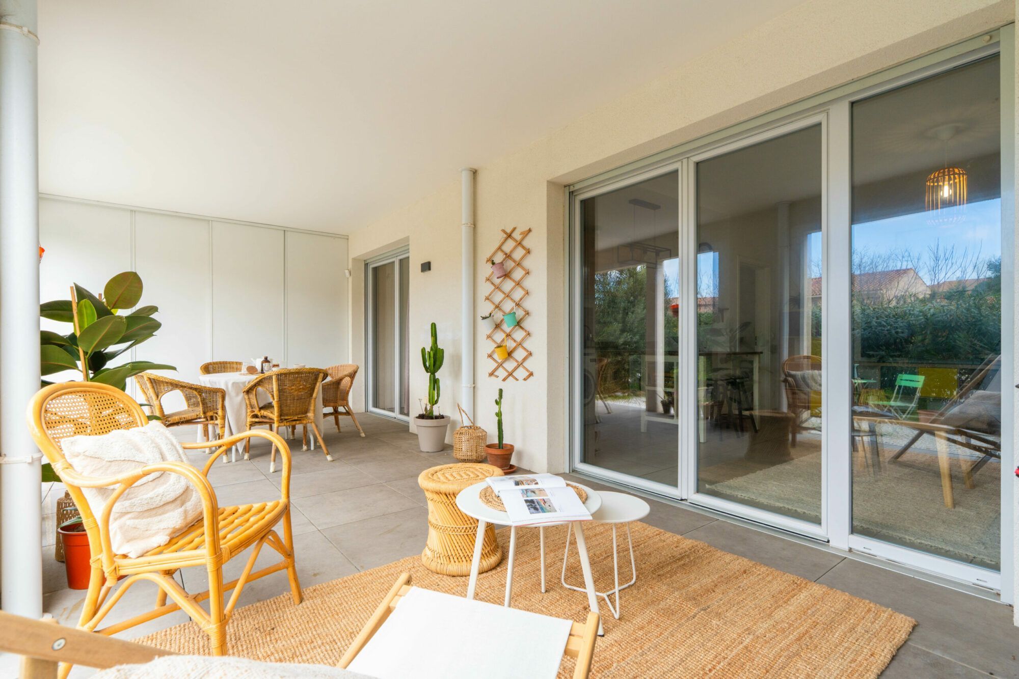 Dès l’entrée, la sensation d’espace et de lumière s’impose. Les 59 m² loi Carrez offrent une organisation fluide et harmonieuse, parfaitement adaptée au quotidien. Le séjour s’ouvre généreusement sur une vaste loggia de 24 m², véritable pièce à vivre supplémentaire où imaginer un salon d’extérieur, une salle à manger d’été ou un espace détente à l’abri des regards.