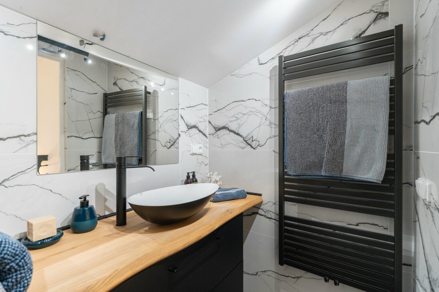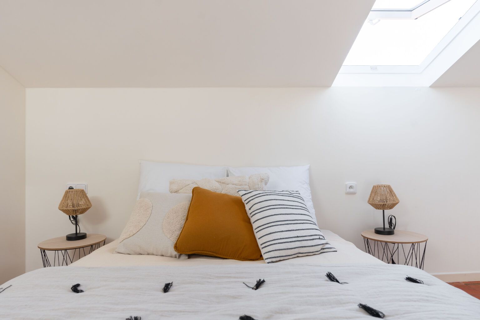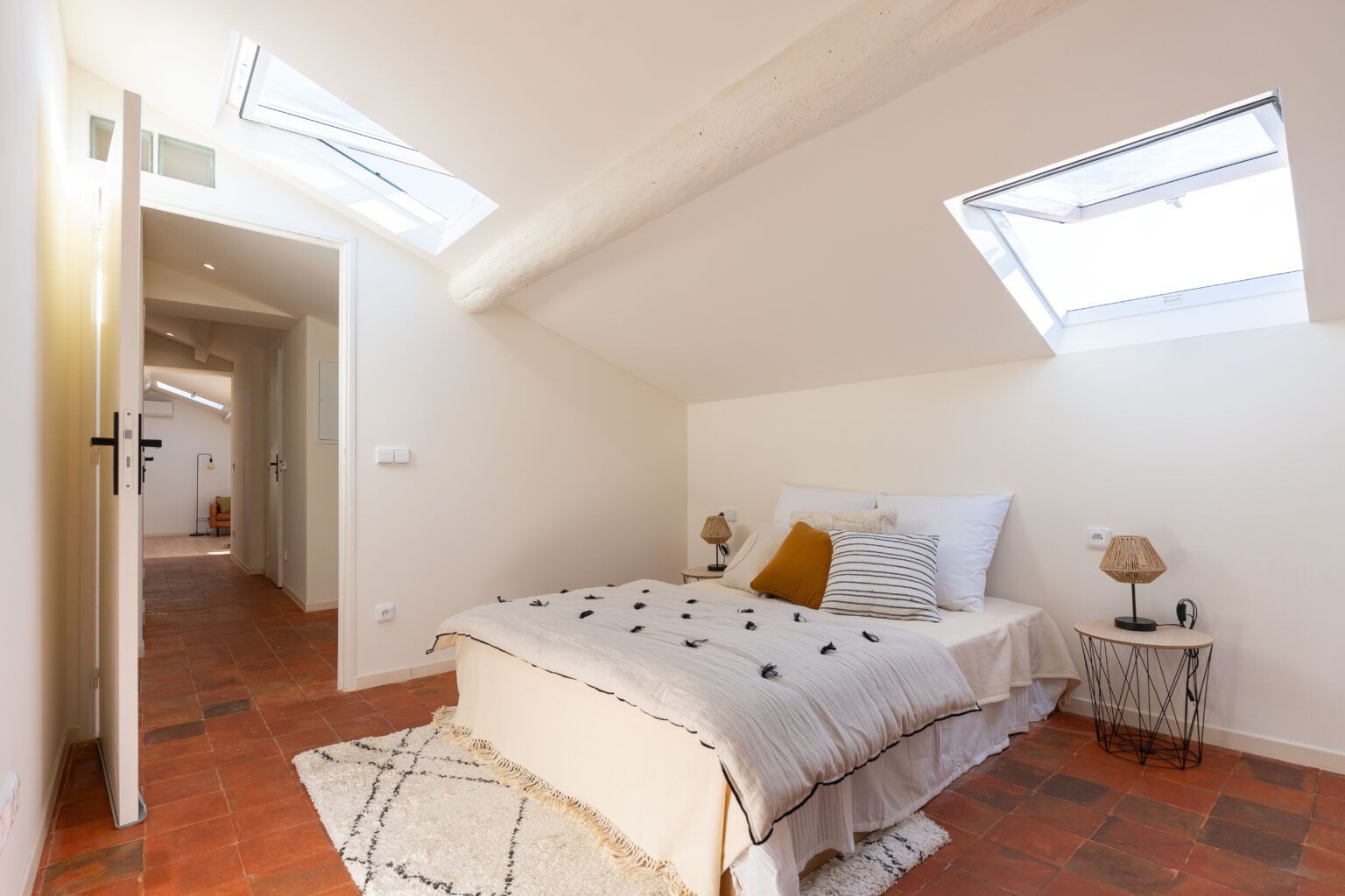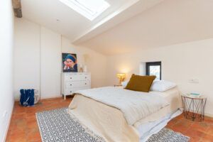 Sur l’aile EST délimitée du reste par sa salle d’eau avec douche italienne, l’espace nuit se présente avec deux chambres aux volumes agréables baignées de la lumière qui se faufile par les velux.