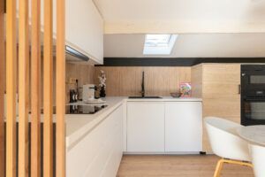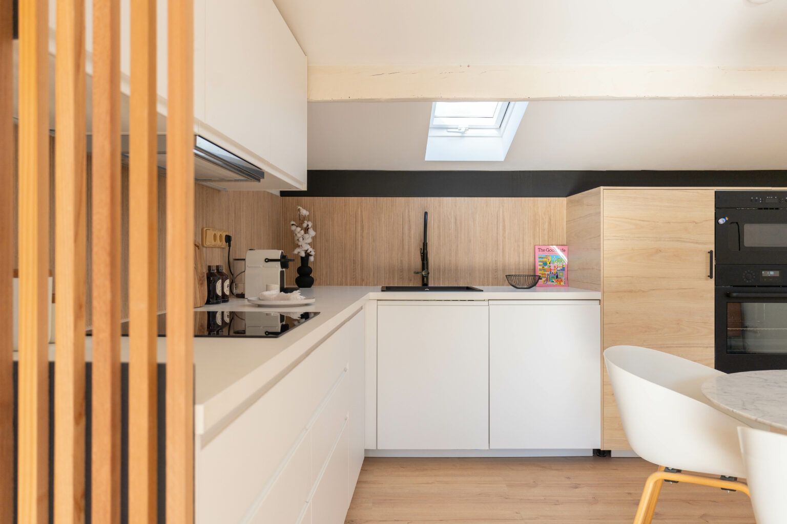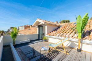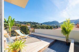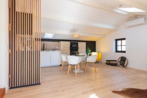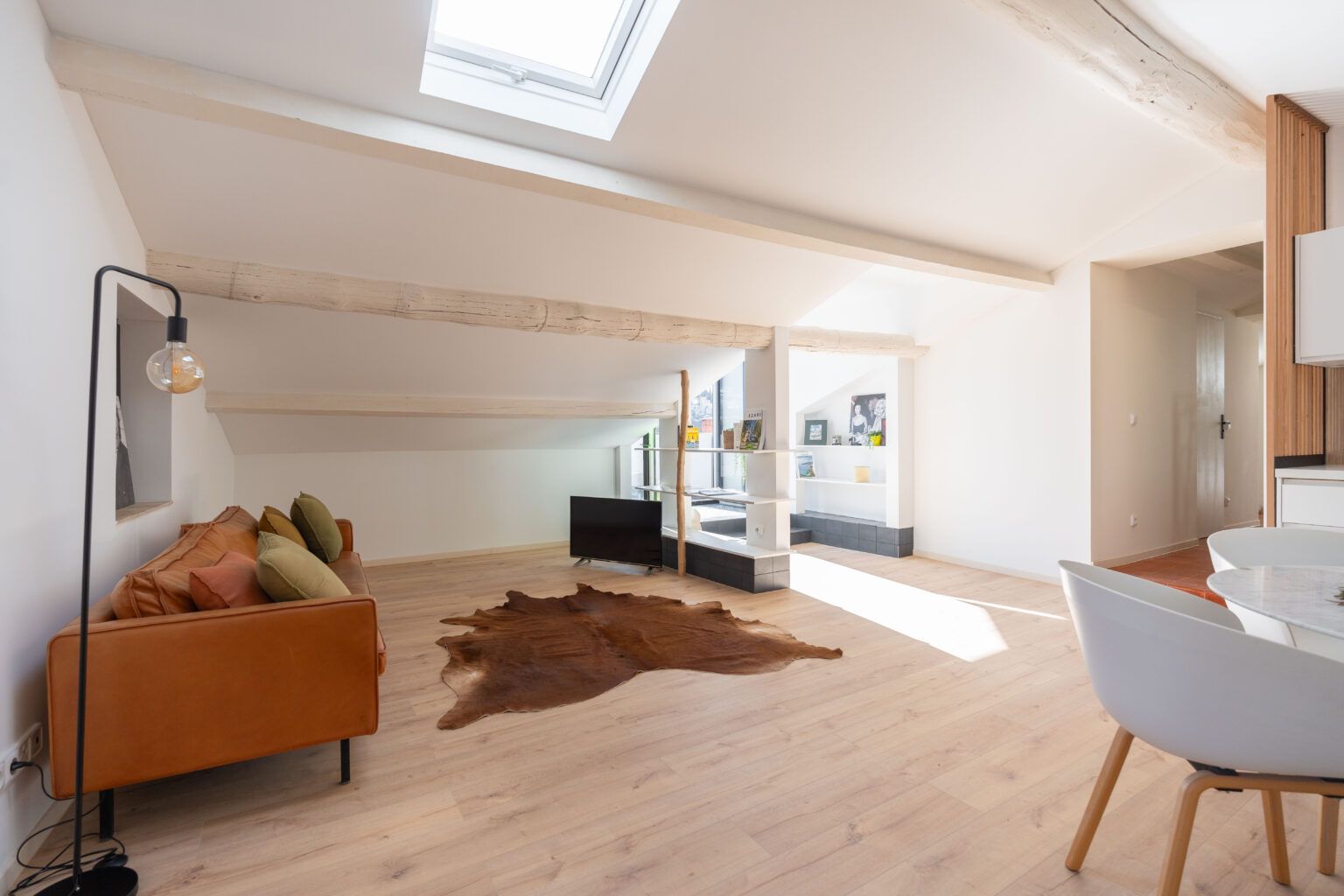 L'impression de dominer les toits du village, profiter d'une vue panoramique dans un appartement atypique aux belles prestations.