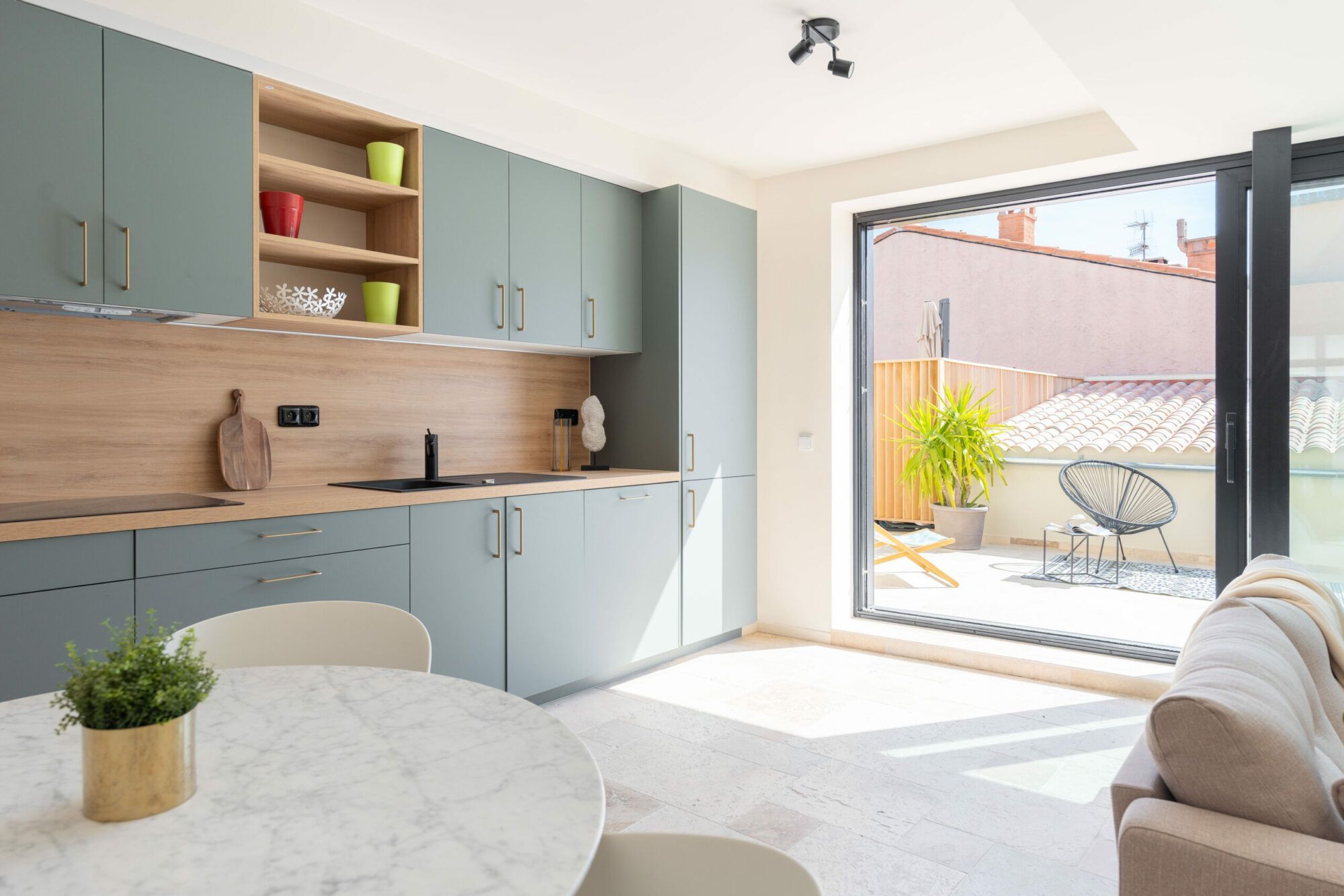 La relecture du bien est étonnante. Le dialogue constant entre un intérieur apaisant et l’extérieur orienté sud/est baigné de soleil font sont les atouts majeurs de cet appartement rare sur le marché cassidain.